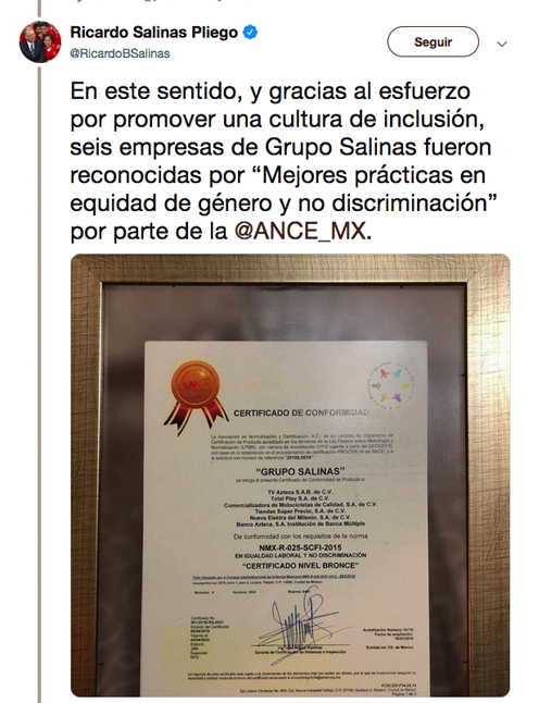 Grupo Salinas recibe “Reconocimiento por Beneficios a Empleados”