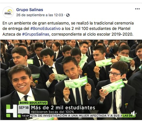 Alumnos de Plantel Azteca reciben el Bono Educativo