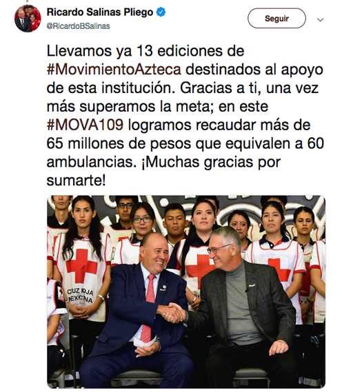 Movimiento Azteca recauda más de 65 mdp para la Cruz Roja