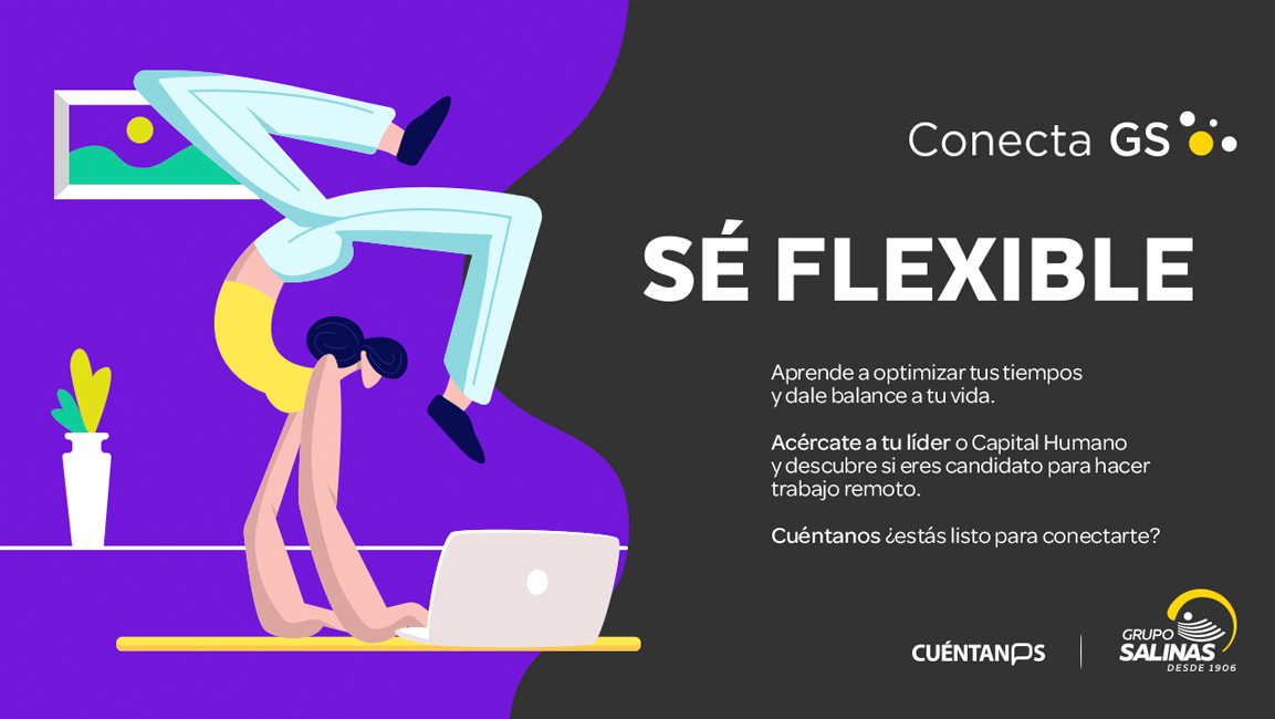Se han encontrado grandes beneficios —tanto para las empresas como para los empleados— al implementar un sistema con flexibilidad de horarios. Por ello, Grupo Salinas diseñó Conecta GS, un esquema de trabajo que da mayor libertad a nuestros socios para que decidan dónde, cuándo y cómo trabajar.