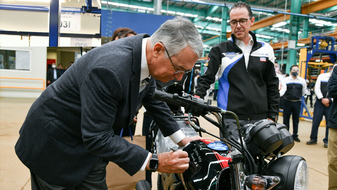 En su recorrido por las líneas de producción, observó el desarrollo del ensamblaje de las motocicletas y las mejoras implementadas en la planta y aprovechó la oportunidad para manejar algunos de los modelos más recientes que están en el mercado.