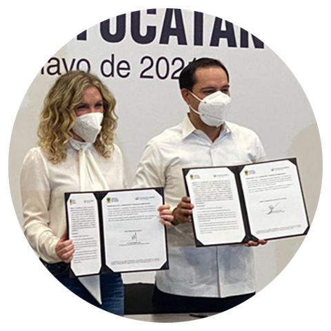 Acudieron también a la firma Antonio Domínguez Sagols, Director General de Fundación Azteca y Loreto Villanueva Trujillo, Secretaria de Educación Pública de Yucatán.